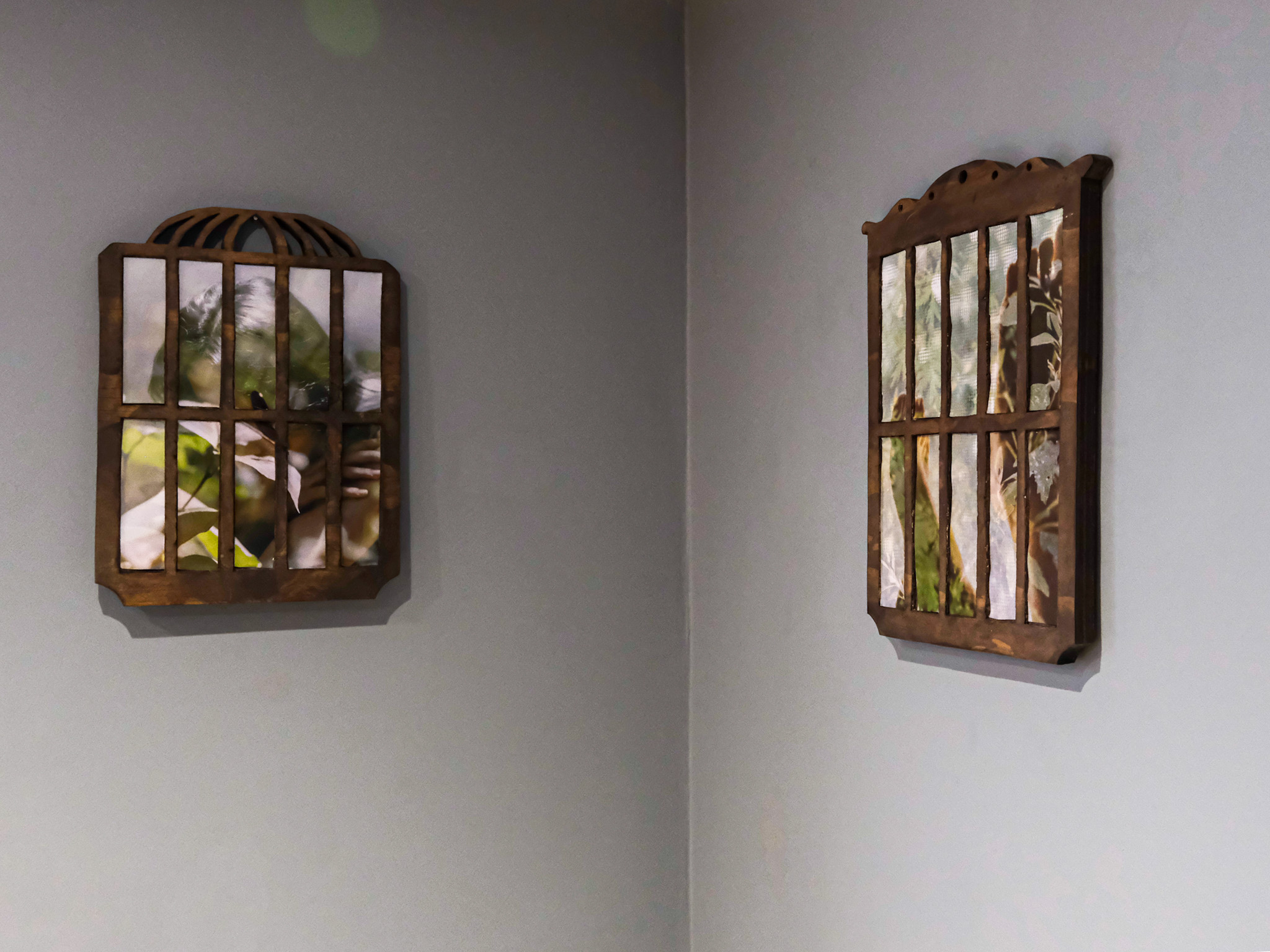 These two works are part of a recent visual experiment inspired by *The Vegetarian* by the Korean writer Han Kang.I am exploring a form of passive transformation that a person may undergo in moments of pain. Those who first sense harm—and remain quietest—often turn toward a softer, almost vegetal mode of existence when pressed into a space where speech and escape are impossible.This metamorphosis becomes a re-imagining of one’s own way of being. It is an instinctive rebellion against suffering: as if only by shedding one’s original form can a brief distancing from pain occur. Such transformation is a choice of self-preservation made in a state of speechlessness.In the images, plants and the female body seep into one another, as if two forms of life are searching for new ways to attach, remember, and endure. Yet even as transformation takes place, the figure remains trapped within the outline of a cage. The birdcage-shaped wooden frame suggests a more ambivalent possibility: that escape never truly happens, and pain merely withdraws into deeper layers, continuing in quieter, more concealed ways. Sensitivity becomes both the awareness of confinement and the gaze that lingers on its helplessness and suffocation.